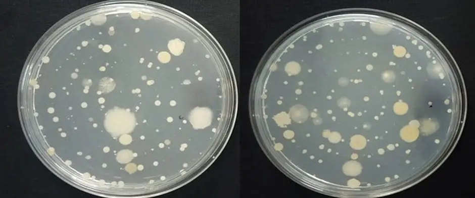 We were not surprised by the findings, when tested for removal of airborne bacteria, the AC showed no effect. The picture below was from the actual experiment, each dot represents a colony of bacteria (naturally present in the air) that originated from a single bacterium. Before the AC was operated, the naturally occurring bacterial load present in the air was 870CFU/m3, after operating the AC for 1 hour inside the room the bacterial load was reduced to 810CFU/m3.